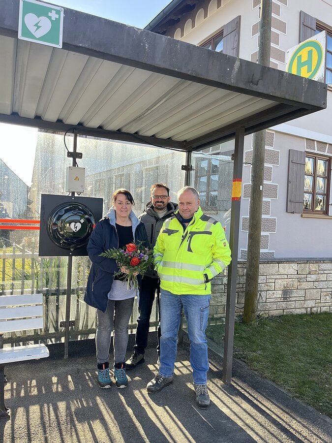 Dank einer großzügigen Spende von Familie Reicherzer aus Amerbach-Kreuth verfügt Kreuth nun über einen öffentlich zugänglichen Defibrillator. Das lebensrettende Gerät wurde am Bushäuschen angebracht und ist damit jederzeit rund um die Uhr gut erreichbar.