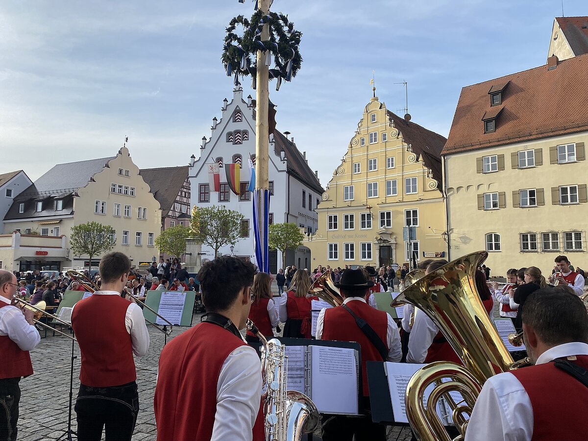Am Vorabend zum 1. Mai (Donnerstag, 30.04.2026) veranstaltet die Stadt Wemding in Zusammenarbeit mit dem Heimat- und Trachtenerhaltungsverein Wemding sowie der FG Wemdosia ein Maibaumfest. Ab 17:00 Uhr spielt die Jugend- und Stadtkapelle Wemding bei einem Standkonzert am historischen Marktplatz. Im Anschluss an die Begrüßung durch Bürgermeister Dr. Martin Drexler werden vom Heimat- und Trachtenerhaltungsverein verschiedene Maitänze wie der „Gautanz“, „Schlampperer“, „Bandltanz“, „Topporza“ sowie der „Tätschler“ dargeboten. Die Kindergruppe des Trachtenvereins führt den Tanz „1, 2, 3, 4“ vor und „Kübel rinnt“. Nach der traditionellen Blasmusik sorgt die FG Wemdosia für Musik. Von dieser wird auch ein Kindertanz dargeboten.