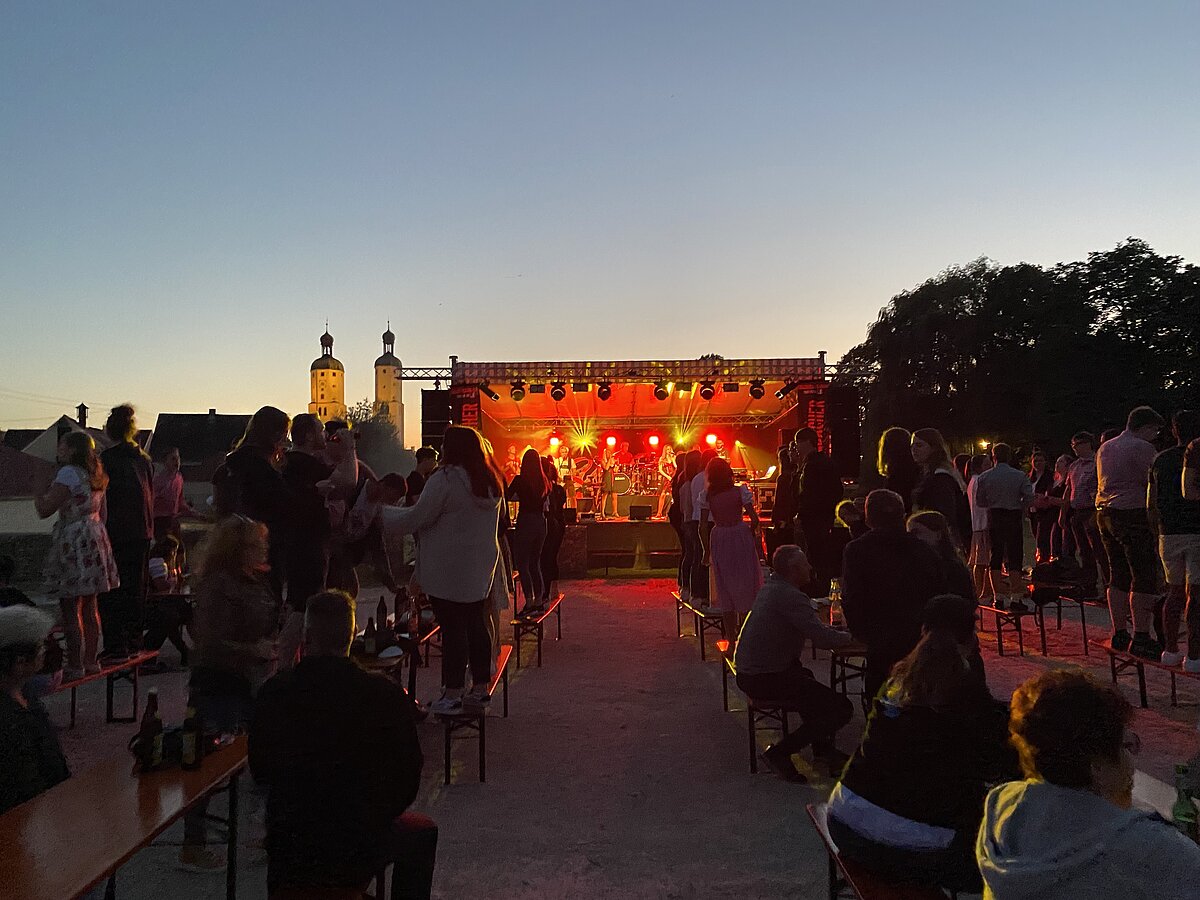 Die Altstadt mit ihren barocken Giebeln und Fassaden bietet für Veranstaltungen eine wunderbare Kulisse Gerade in den schwierigen Zeiten der Gastronomie sollte mit dem Altstadt Sommerfest ein Event geschaffen werden, bei dem Gäste kulinarisch verwöhnt und musikalisch unterhalten werden Der Marktplatz wurde farblich von einer Beleuchtungsfirma illuminiert Höhepunkt am Freitagabend war ein Sternmarsch und Gemeinschaftschor mit den vier Kapellen der Verwaltungsgemeinschaft
