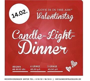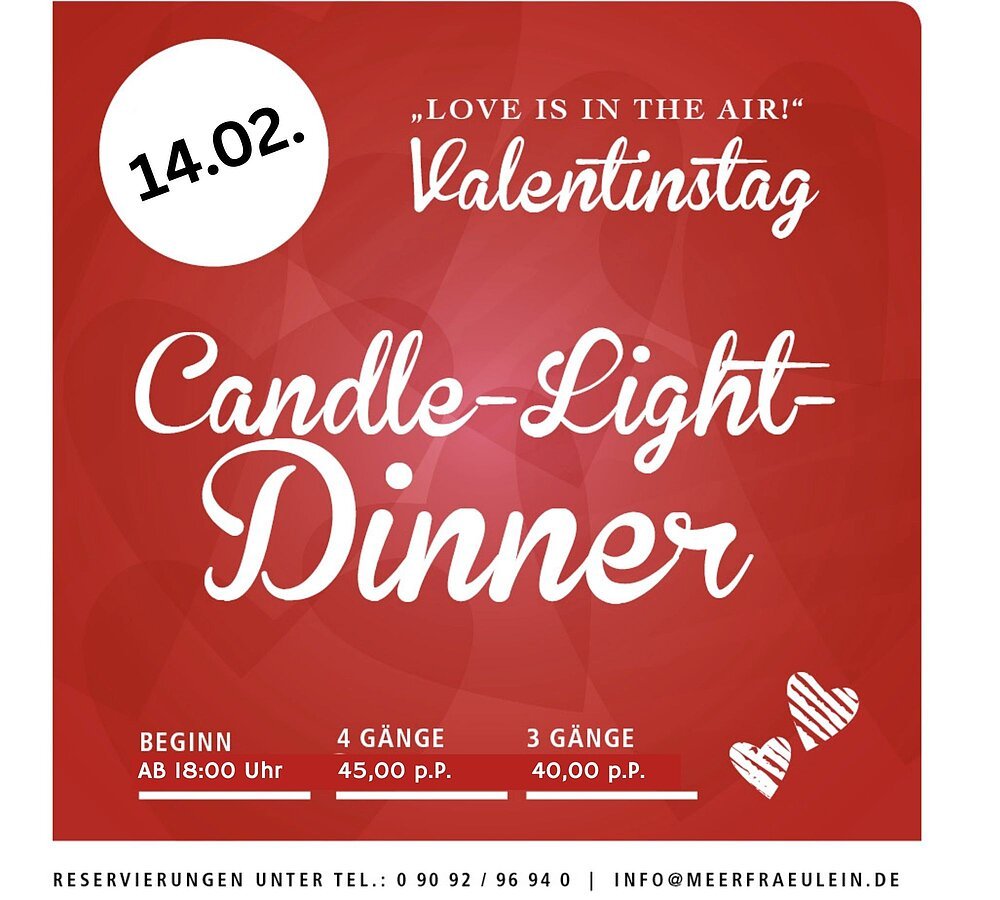 Am Valentinstag verwandelt sich unser Restaurant im Meerfräulein in ein Meer aus Kerzenschein – der perfekte Rahmen für einen romantischen Abend zu zweit.