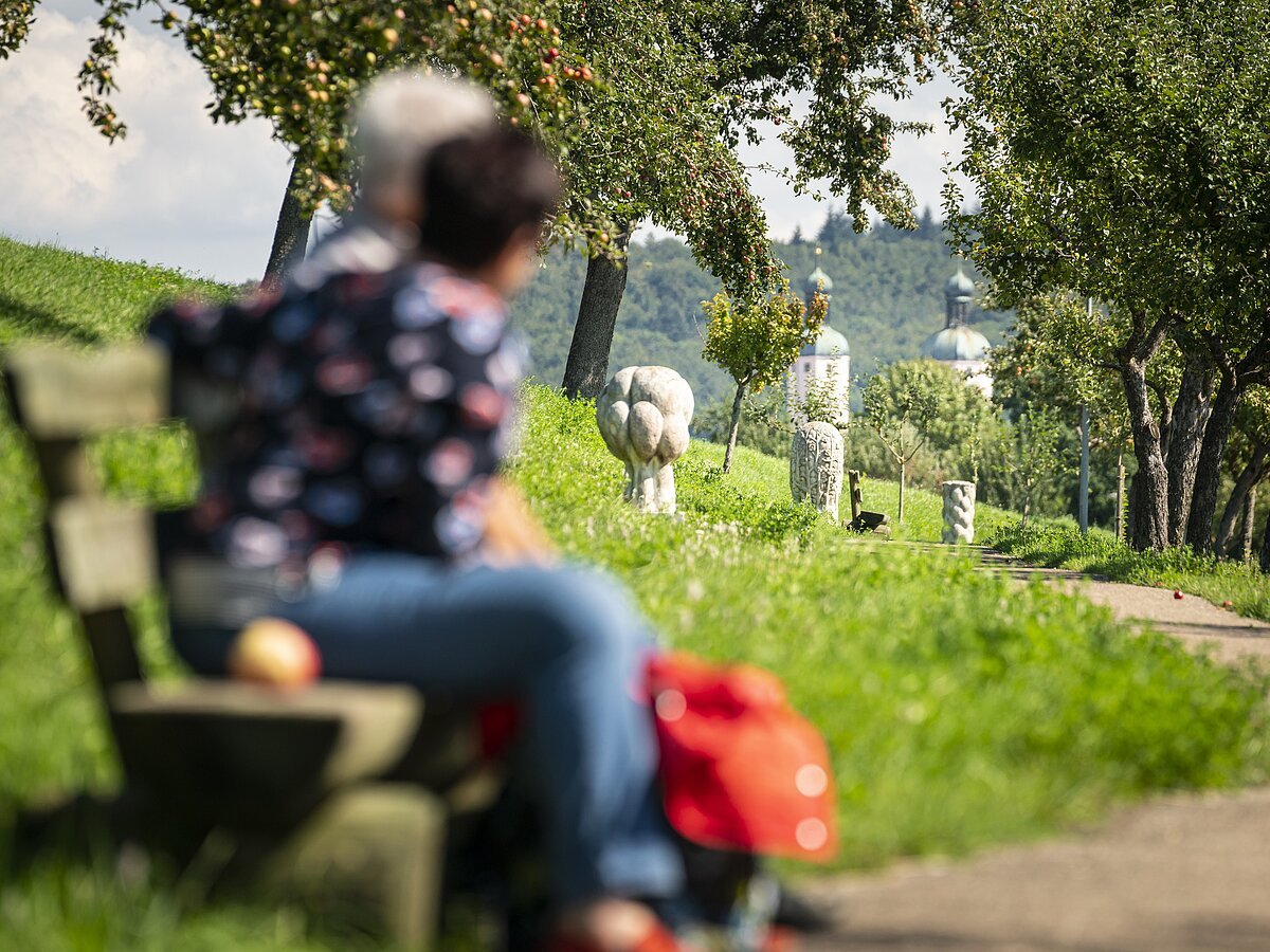 Der Bayerisch-Schwäbische Jakobspilgerweg, verlässt Donauwörth über die Donaubrücke in südlicher Richtung und erreicht via Mertingen das im Augsburger Land liegende Ziel der heutigen Etappe: das ehemalige Benediktinerinnen-Kloster Holzen bei Allmannshofen.