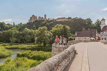 Hier an der Schnittstelle zwischen Schwäbischer und Fränkischer Alb entwässert als einziges Fließgewässer die gemächlich dahinfließende Wörnitz den Rieskrater. Sie hat hier ein Durchbruchtal geschaffen und ist von markanten Felsformationen des Kraterrandes gesäumt. An dieser besonderen Stelle wurde auf einer Kraterrandscholle die 1150 erstmals erwähnte Stauferburg errichtet.
