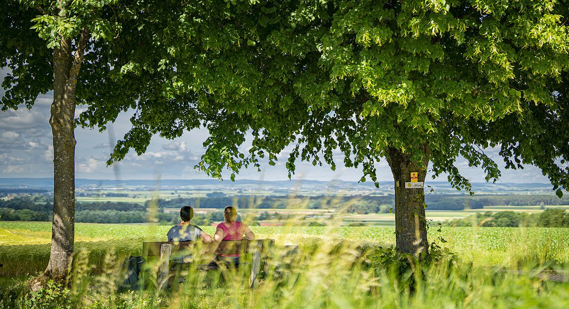 Die zweite Etappe des Ries-Panoramaweges führt von der Wemdinger Altstadt zur Wallfahrtskirche Maria Brünnlein, einem der meistbesuchten Wallfahrtsorte in Bayern, der 1998 zur Basilika erhoben wurde. Nach Anstieg auf den Hessenbühl erklärt eine Panoramatafel den herrlichem Blick auf den gesamten Kraterrand des Ries-Kraters. Im mittelfränkischen Polsingen zeigt ein Aufschluss ein rötliches, blasenreiches Gestein mit Kristallin-Einlagerungen. Es handelt sich um Impaktschmelzbreccie, die beim Asteroideneinschlag aufgeschmolzen wurde. Auf dem weiteren Weg Richtung Megesheim tun sich erneut Panoramablicke über das Ries auf. In die Nähe des Sportplatzes Hainsfarth lohnt sich ein kurzer Abstecher zu den Riesseekalken am Burschel – von Grünalgen gebildete Kalkfelsen erzählen hier von dem einst im Krater gebildeten Riessee. In Oettingen führen versteckte Gehwege zur sehenswerten Schlossstraße, wo man Fachwerkhäuser und historische Architektur bewundern kann.